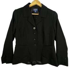Pendleton 10 Petite Structured Hi Low Notched Collar Button Up Black Wool Blazer