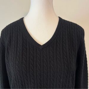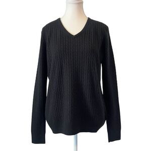 Pendleton 100% Cashmere Cable Knit V-Neck Sweater in Black Size Medium