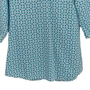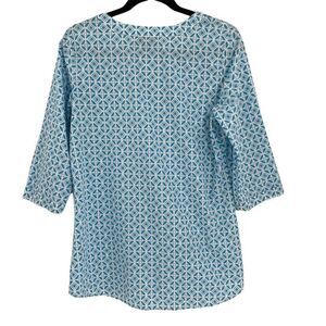 Pendleton 100% Cotton Split Neck 3/4 Length Sleeve Blouse Blue White Women Small