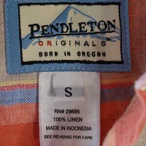 Pendleton, 100% Linen Plaid Button-down Long Sleeve Shirt, Orange, Blue