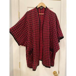 Pendleton 100% Merino Wool Cocoon Cardigan Sweater One Size Red Houndstooth