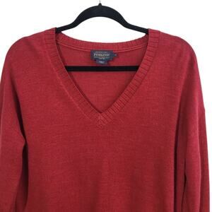 Pendleton 100% Merino Wool V-Neck Pullover Sweater Medium Red Preppy Academic
