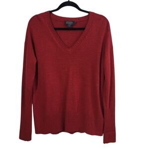 Pendleton 100% Merino Wool V-Neck Pullover Sweater Women's Medium Red Ribbed Preppy