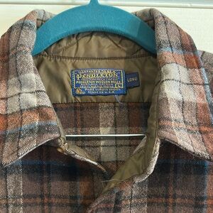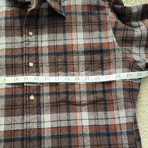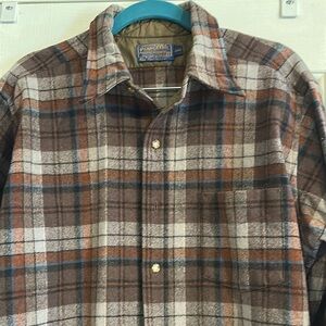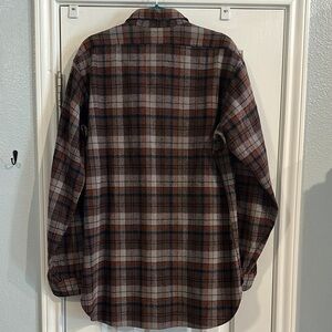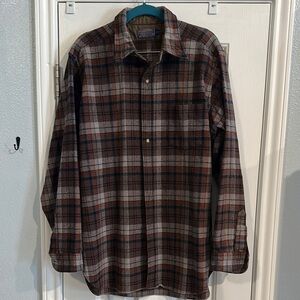 Pendleton 100% Virgin Wool Brown Plaid Button Down Vintage Mens L Long Outoors