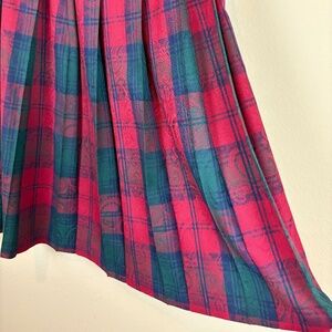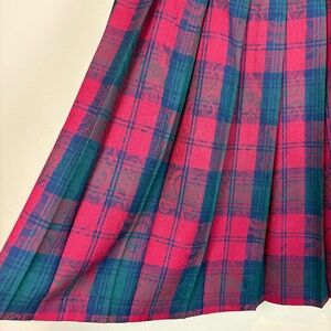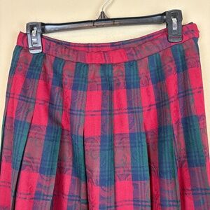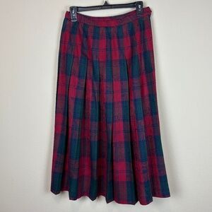 Pendleton 100% Virgin Wool Vintage Navy/Green/Red Pleated Plaid Midi Skirt