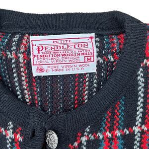Pendleton 100% Wool Red Navy Plaid Tartan Cardigan Size M Petites 90s Vintage