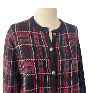 Pendleton 100% Wool Red Navy Plaid Tartan Cardigan Size M Petites