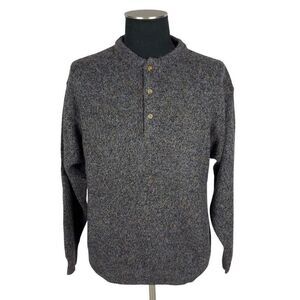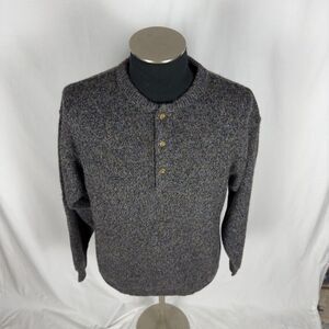 Blue Gray 100% Wool Pendleton Henley Oversized Knit Sweater.