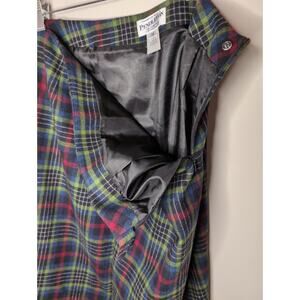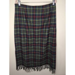 Pendleton 100% virgin wool dark tartan plaid fringe long skirt 14