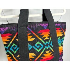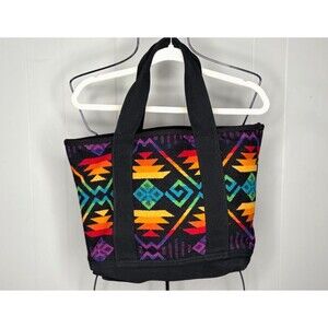Pendleton 18" Tote Bag Wool Bright Canvas Straps All Over Pattern Aztec Pockets