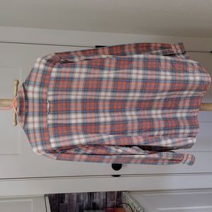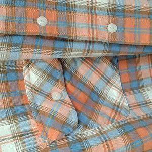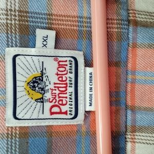 Surf Pendleton Men's cotton button down plaid shirt in mango cream and blue khaki plaid. Excellent condition Men's size xxl. It has been gently and used and comes from a smoke free home.