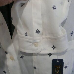 Pendleton Aztec Micro Print Silk Blouse White Blue Small. New with tag . size XL