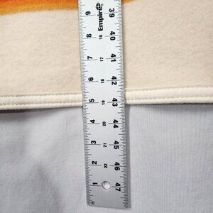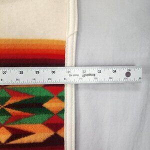 This beautiful wool blanket is new without any tags. Beige color with vibrant orange and green pattern. Perfect size for crib our your lap.