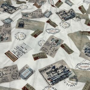 Pendleton Biscayne Bermuda Hawaiian Style Shirt Mens Size Small Short Sleeve Post Office Postal Stamps. Botton Down