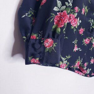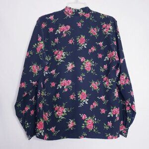 Pendleton Black Floral Button Front Career Blouse Shirt Top Women's Size 12