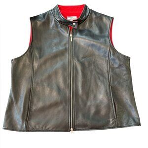 Pendleton Black Genuine Leather Vest Red Fleece Lined One Size Western Heritage Outerwear