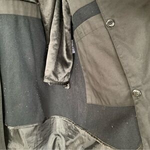 Liner can be removed, some pilling on the liner, zipper and button closure, great condition!