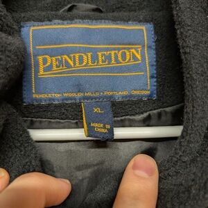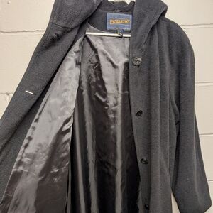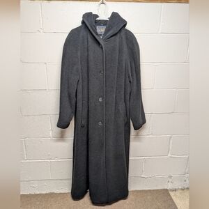 Pendleton Black Womens Long Hooded Winter Coat XL Virgin Wool Blend Button Front