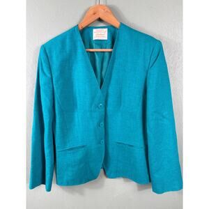 Pendleton Blazer Jacket Women's 8 Teal Blue Made in USA Country Sophisticates
