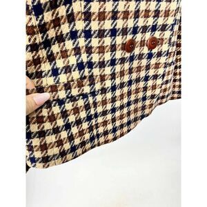 Pendleton women’s petite size 8 blazer jacket. Brown, Navy blue, and tan colors with a check pattern. Double Breasted. Measurements in photos. Very good pre-owned condition. No rips, holes, or stains. Small water mark on inside liners. see photo. Can't see when wearing. Comes from smoke free environment. Extra button inside jacket. Pockets are still sewn closed. Very in style right now, has a bit of an equestrian style. I would pair with tall riding boots and a scarf for a super classy look. Made in the USA. 100% Virgin wool.