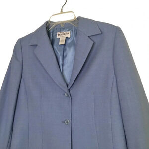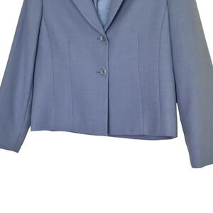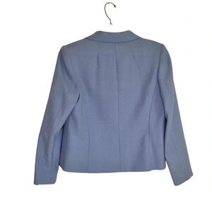 Lined. Beautiful baby blue color. Light enough to wear year round. Excellent preowned condition.