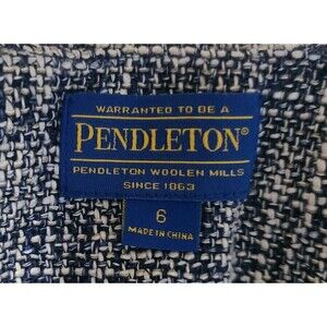 Pendleton Blazer Women's 6 Blue/White Tweed Full Zip Collarless Faux Pocket