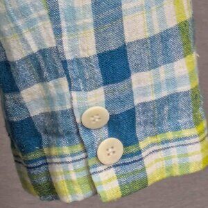 Pendleton Blazer Womens Large Blue Yellow Plaid Tartan Linen Blend Unlined VTG
