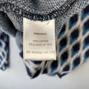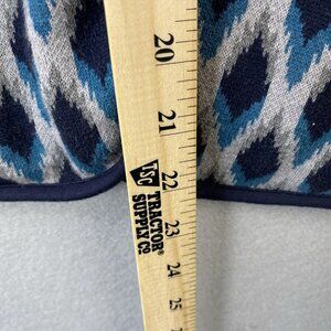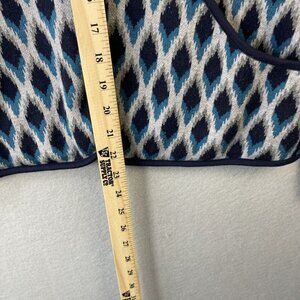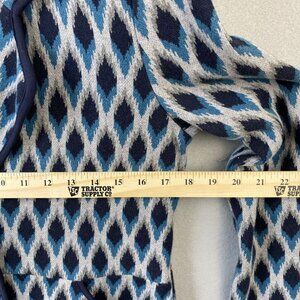 This is a Pendleton blazer for women in size Medium, featuring a tribal-inspired argyle/diamond pattern in blue. The jacket is made of 100% cotton knit fabric, with a regular fit and long sleeves. It is suitable for various occasions such as travel, parties, casual, formal, and business. The blazer has a tuxedo style with a single-breasted cut, and it is designed for the Fall season.