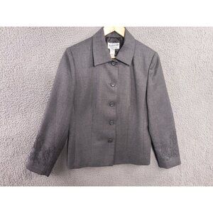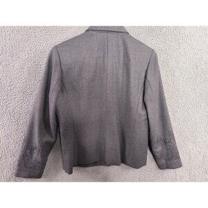 Pendleton Blazer Womens Size 8 Virgin Wool Gray Jacket Floral Embroidered Sleeve