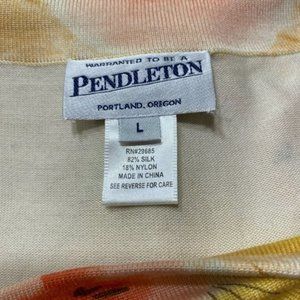 Pendleton Blouse Top L Silk Blend Floral Boatneck Tie 3/4 Sleeve Ribbed Womens