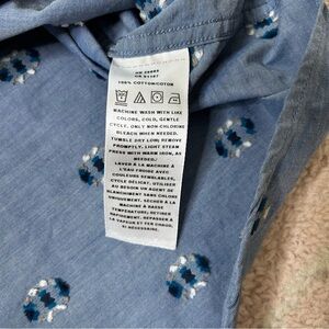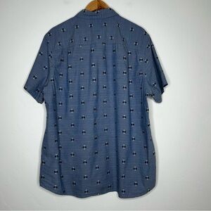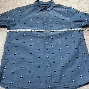 Casual blue shirt with button-down design. Features a subtle southwest pattern for added style. Ideal for relaxed outings.