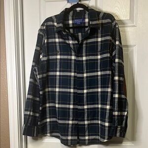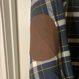 Classic plaid design. Button-up front. Long sleeves with elbow patches. Perfect for casual wear.