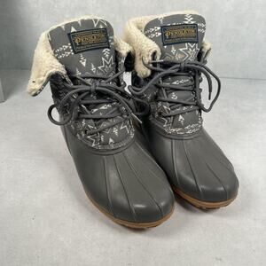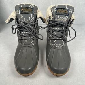 Pendleton Boots Womens Size 7 Gray Duck Rubber Shell Winter Sherpa Lined Lace Up