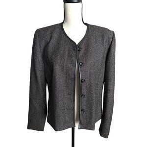 Elegant brown tweed blazer. Features button closure. Perfect for wearing to the office or for weekends with jeans this fall. Like new condition.