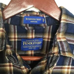Pendleton Burnside Blue and Gold Plaid Flannel Shirt.