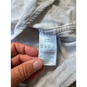 In FAIR pre-owned condition. 100% cotton. The shirt itself is in good condition, but there are several small stains/spots on the shirt, as shown in photos. Still very cozy & wearable! Priced accordingly.