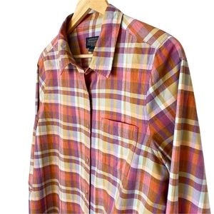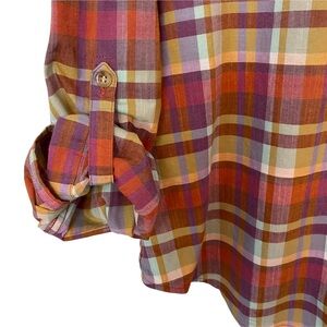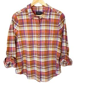 Pendleton Button Shirt Womens Petite Large Roll Tab Sleeves Plaid