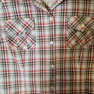 Pendleton Button Up Long Sleeve Shirt Size Large Women's Tan Red Plaid