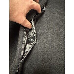 This is a Pendleton wool blend jacket in black, size Large for men. It features a button-up closure, polyester lining, and has a stylish overcoat design. The outer shell material is wool, making it a warm and classic choice for cold weather. Made in China, this jacket is not considered vintage.