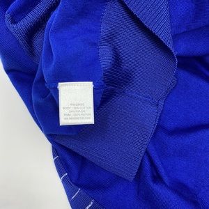 Women’s New With Tags Royal Blue with White Cardigan Size Medium. Body is 76% Cotton 24% Nylon Trim is 100% Rayon