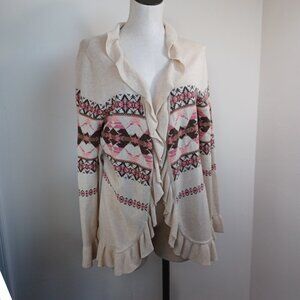 Pendleton Cardigan Ruffle Waterfall Style Cotton Aztec Neutral Print Women Large