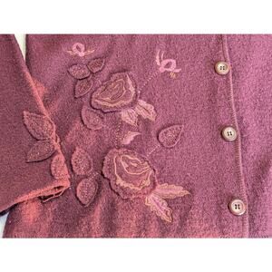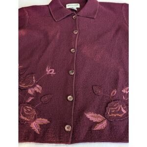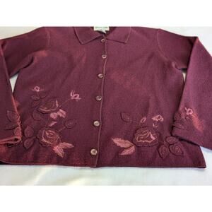 Pendleton Cardigan Sweater Burgundy Embroidered Applique Medium Grandma Floral