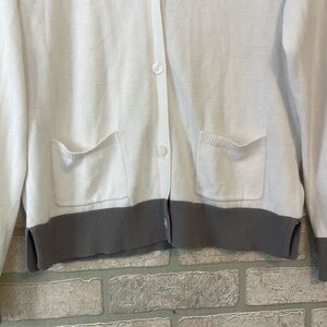 Pendleton Cardigan Sweater White W/ Gray Trim lightweight soft material sz M