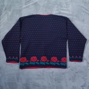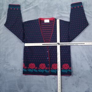 Pendleton Cardigan Sweater Womens Blue Red Size Large 100% Virgin Wool Roses