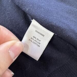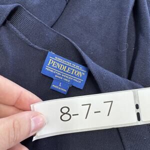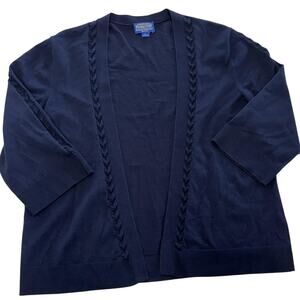 Pendleton Cardigan Sweater Womens Large Navy Silk Blend Open Front 3/4 Sleeve