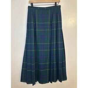 Pendleton Celebration Green Tartan Pleated Wool Midi Skirt Dark Academia Size 10