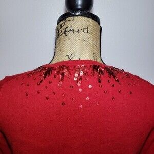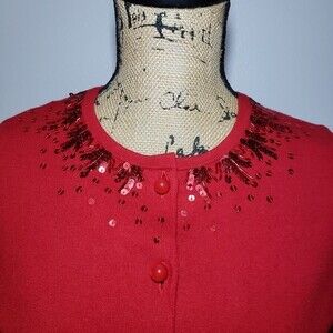 -Seven-button closure, ribbed cuffs and hem, fully lined, and sequin accented collar area.