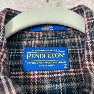 Pendleton Cotton Plaid Button Down Shirt Blue Tan Red Size Large