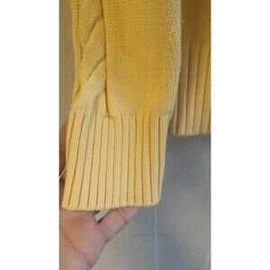 Pendleton Cotton mockneck cableknit yellow raglan sweater size Large