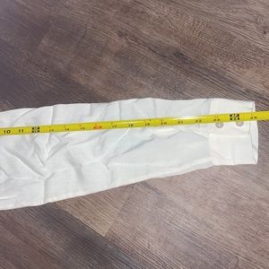 Very nice button down from Pendleton. Cream colored, with pearly buttons and a pretty stitched geometric pattern down the front. Size small, great for a Western look, collared but can be dressed up or down. Very slight mark on the seam, as pictured please see photos. The back is longer than the front, can be easily layered. Don’t forget to bundle and save! All items are inspected and pictured before being delivered.